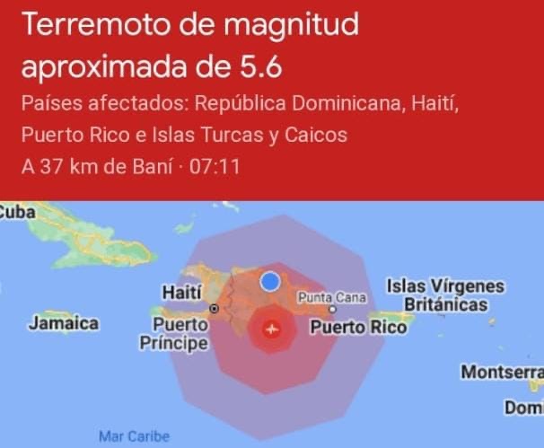 A las 7:11 de la mañana de este miércoles se registró un sismo magnitud 5.6 en República Dominicana.